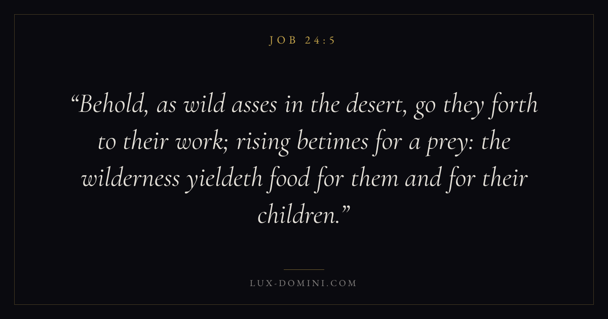 Behold, as wild asses in the desert, go they forth to their work; rising betimes for a prey: the wilderness yieldeth food for them and for their children.