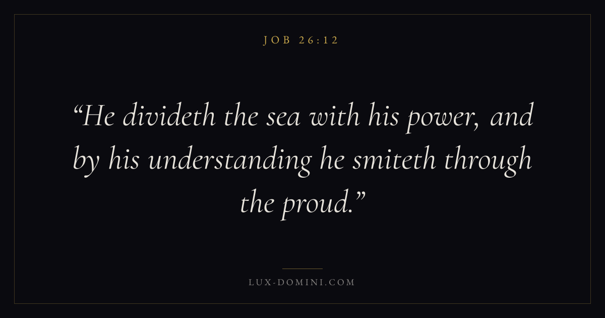 He divideth the sea with his power, and by his understanding he smiteth through the proud.