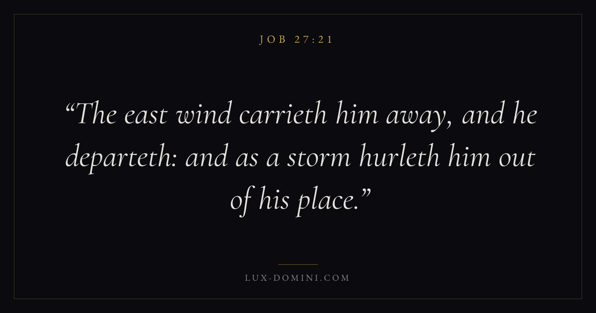 The east wind carrieth him away, and he departeth: and as a storm hurleth him out of his place.