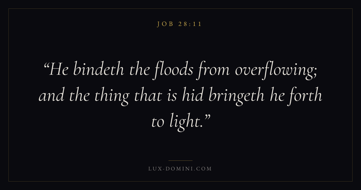 He bindeth the floods from overflowing; and the thing that is hid bringeth he forth to light.