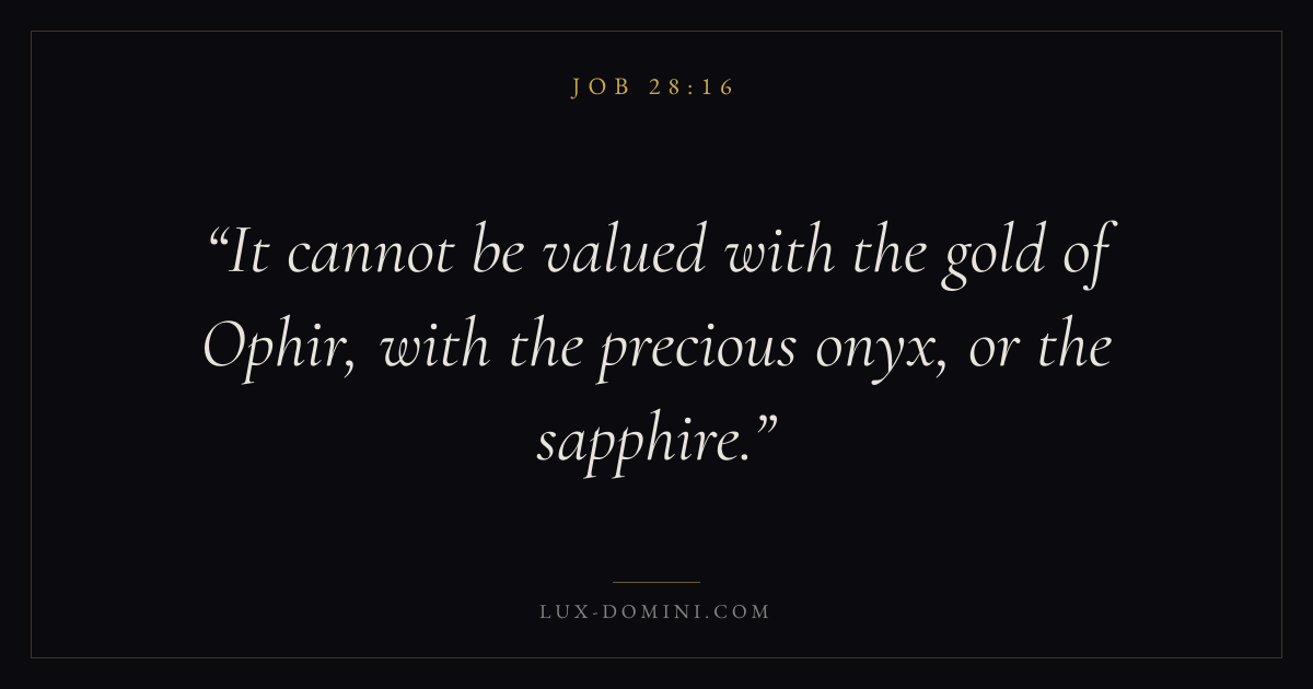 It cannot be valued with the gold of Ophir, with the precious onyx, or the sapphire.