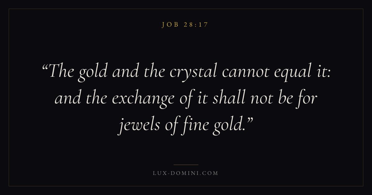 The gold and the crystal cannot equal it: and the exchange of it shall not be for jewels of fine gold.
