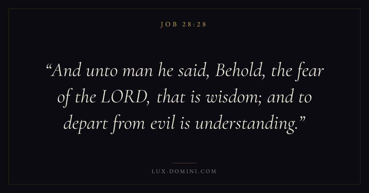 And unto man he said, Behold, the fear of the LORD, that is wisdom; and to depart from evil is understanding.