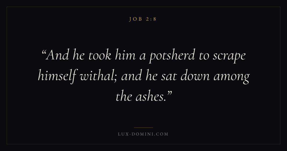 And he took him a potsherd to scrape himself withal; and he sat down among the ashes.