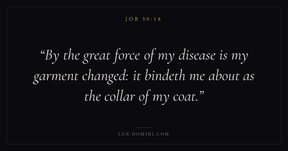 By the great force of my disease is my garment changed: it bindeth me about as the collar of my coat.