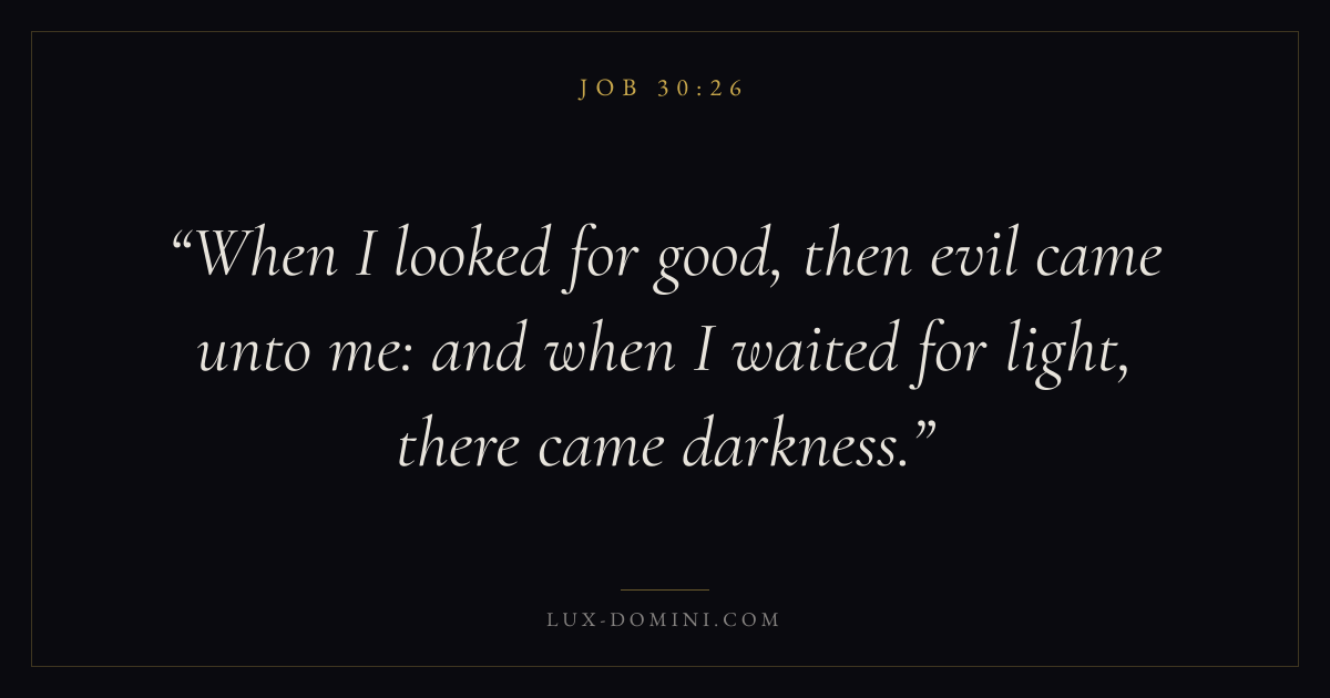 When I looked for good, then evil came unto me: and when I waited for light, there came darkness.
