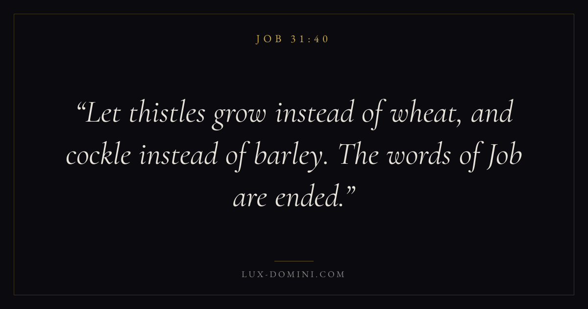 Let thistles grow instead of wheat, and cockle instead of barley. The words of Job are ended.