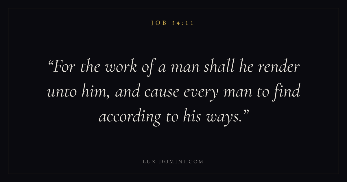 For the work of a man shall he render unto him, and cause every man to find according to his ways.