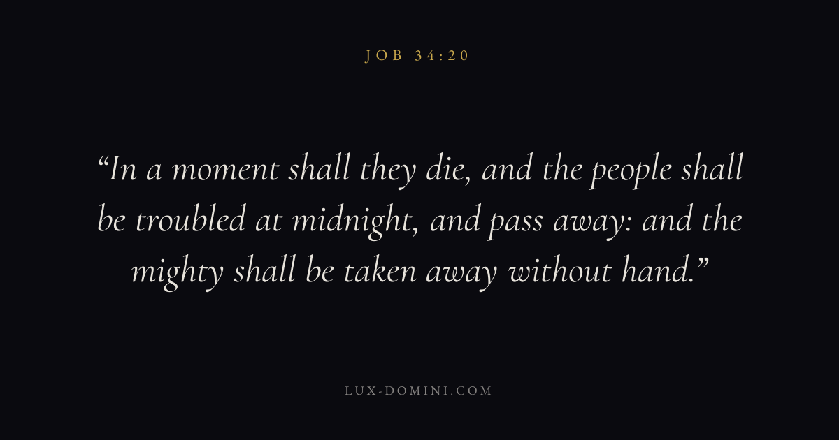 In a moment shall they die, and the people shall be troubled at midnight, and pass away: and the mighty shall be taken away without hand.