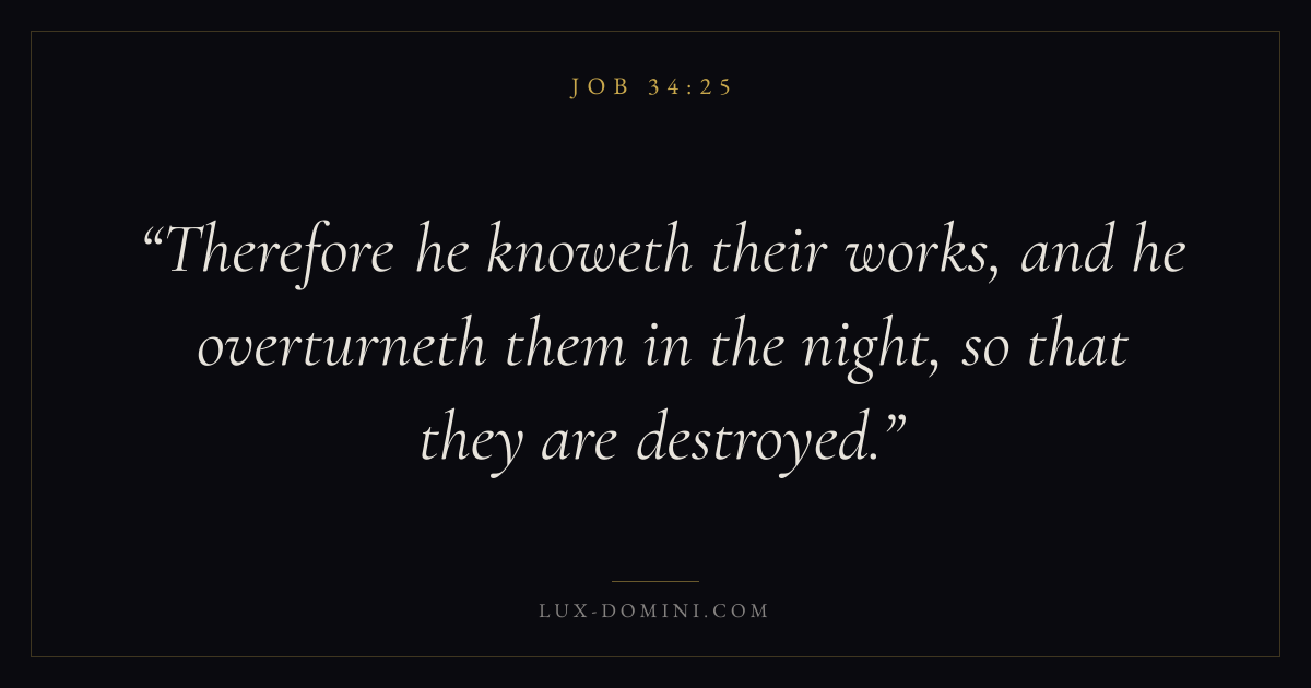 Therefore he knoweth their works, and he overturneth them in the night, so that they are destroyed.