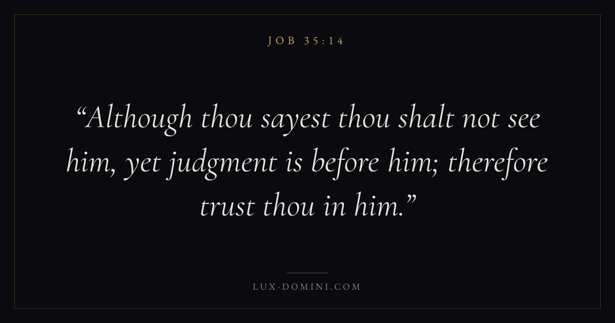 Although thou sayest thou shalt not see him, yet judgment is before him; therefore trust thou in him.