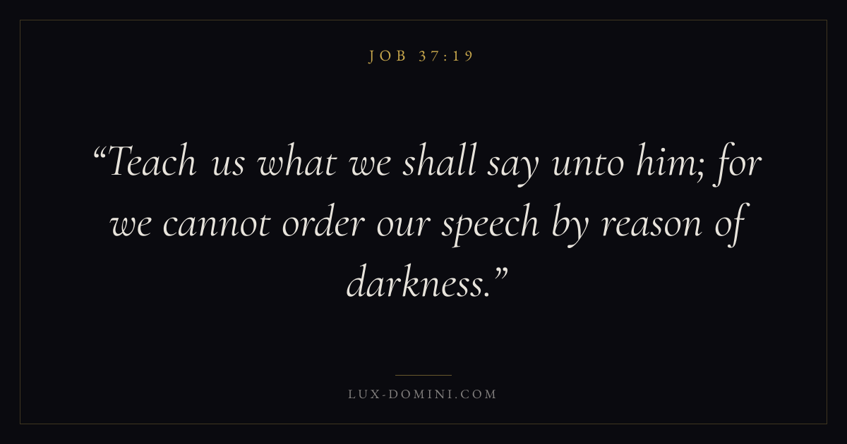 Teach us what we shall say unto him; for we cannot order our speech by reason of darkness.