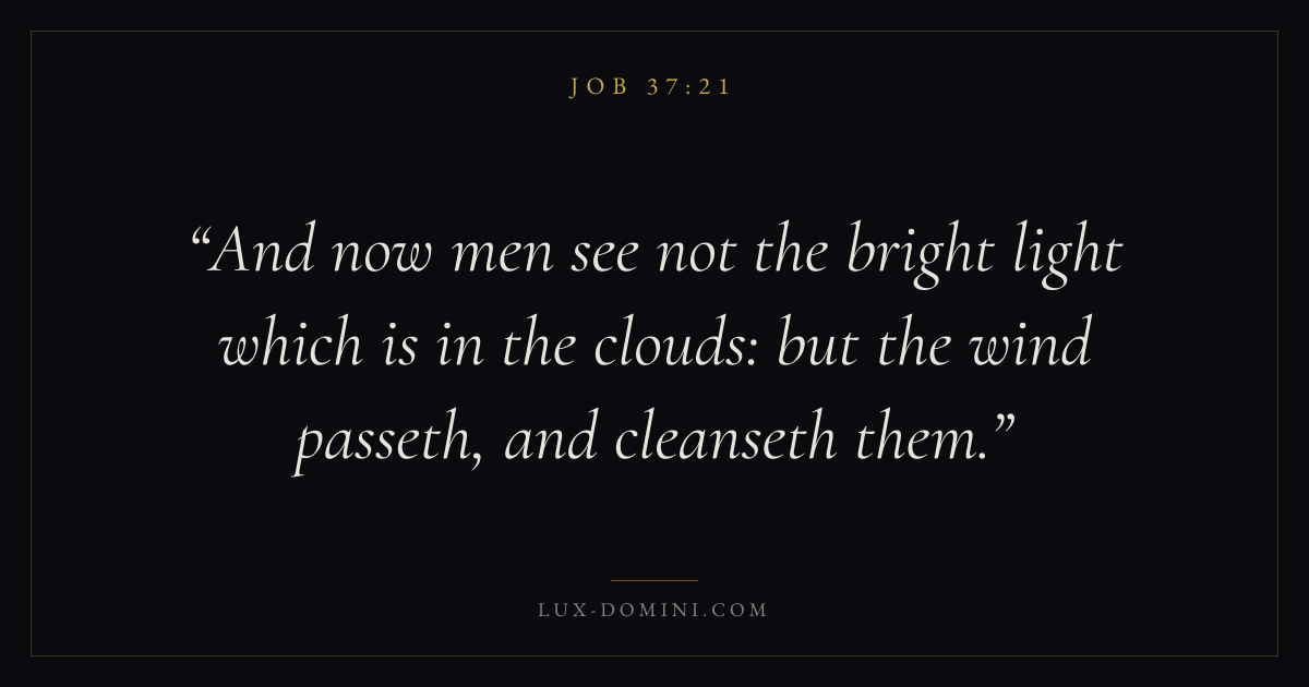 And now men see not the bright light which is in the clouds: but the wind passeth, and cleanseth them.