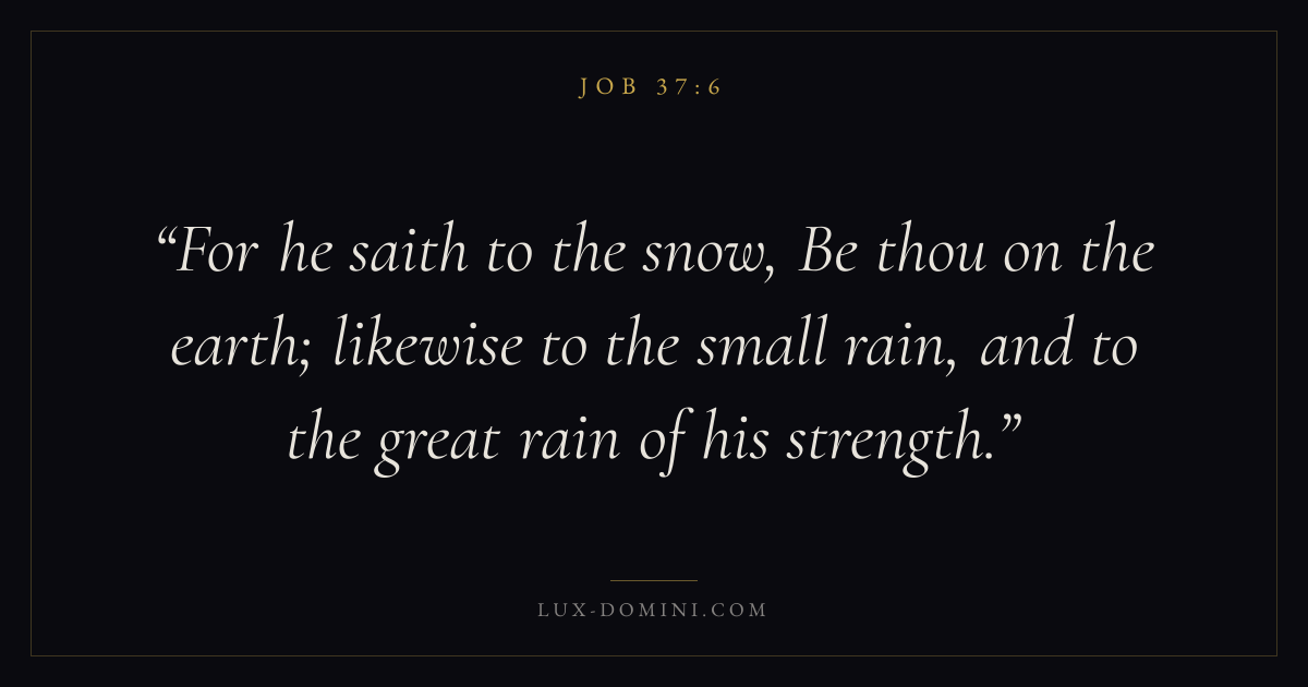 For he saith to the snow, Be thou on the earth; likewise to the small rain, and to the great rain of his strength.