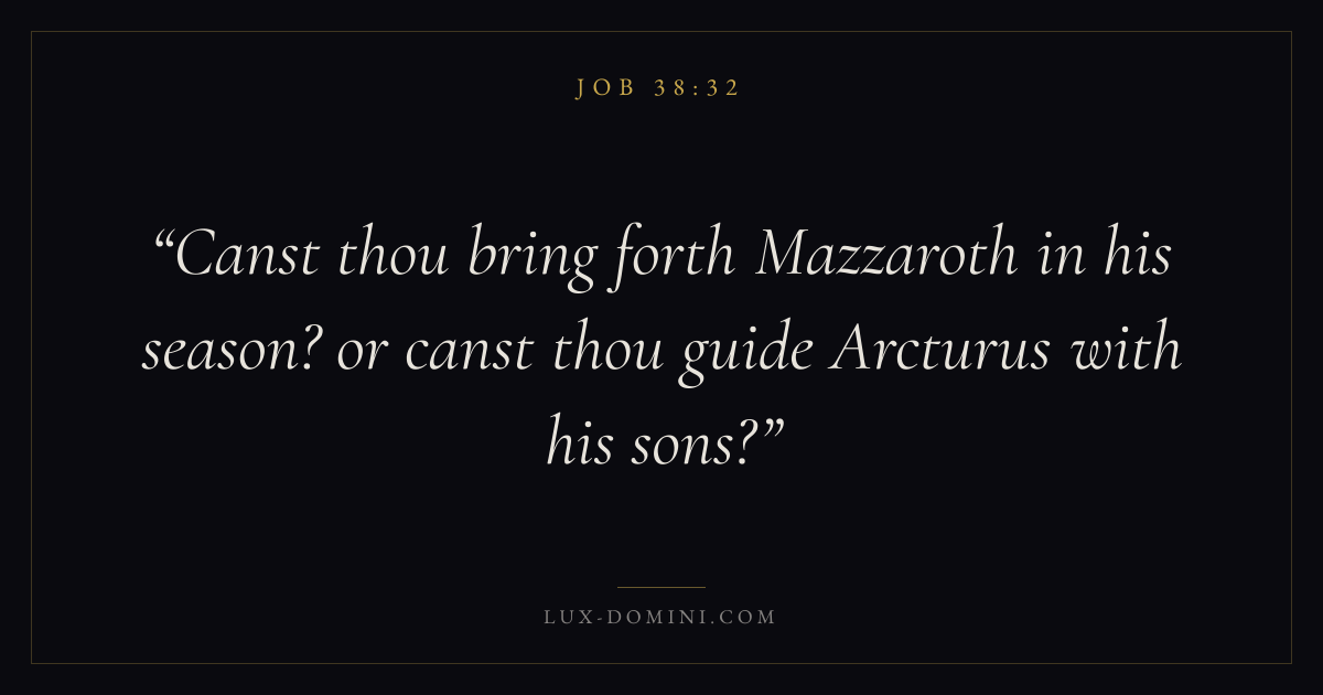 Canst thou bring forth Mazzaroth in his season? or canst thou guide Arcturus with his sons?