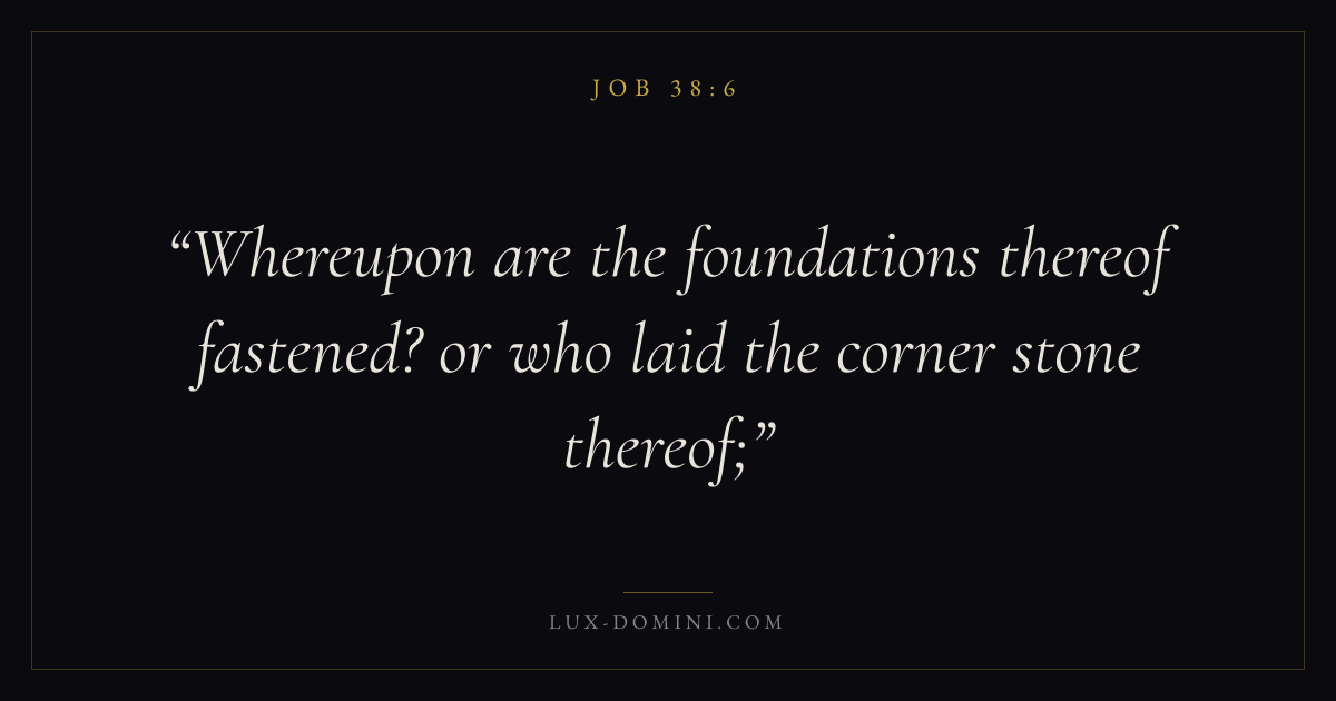 Whereupon are the foundations thereof fastened? or who laid the corner stone thereof;