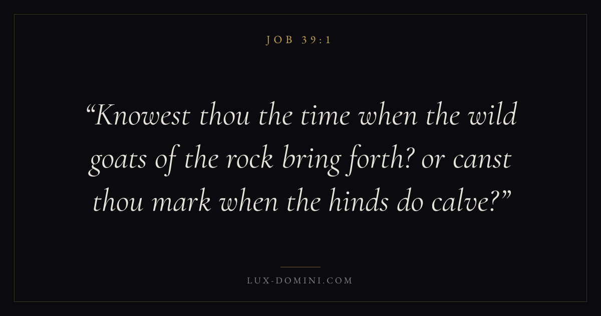 Knowest thou the time when the wild goats of the rock bring forth? or canst thou mark when the hinds do calve?