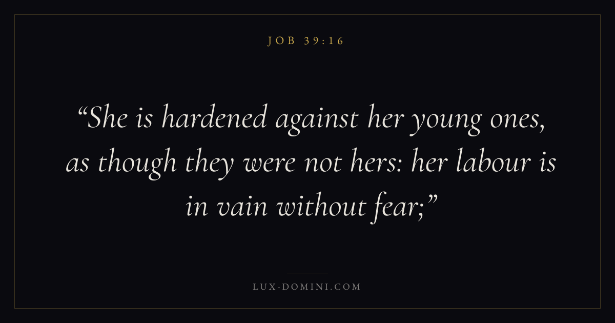 She is hardened against her young ones, as though they were not hers: her labour is in vain without fear;