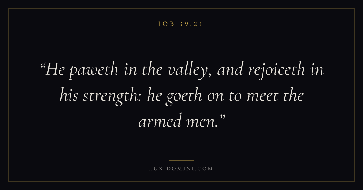 He paweth in the valley, and rejoiceth in his strength: he goeth on to meet the armed men.