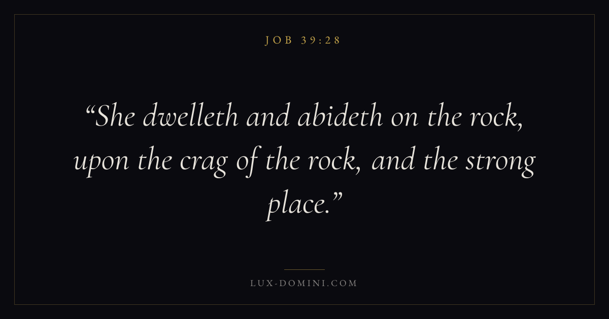 She dwelleth and abideth on the rock, upon the crag of the rock, and the strong place.