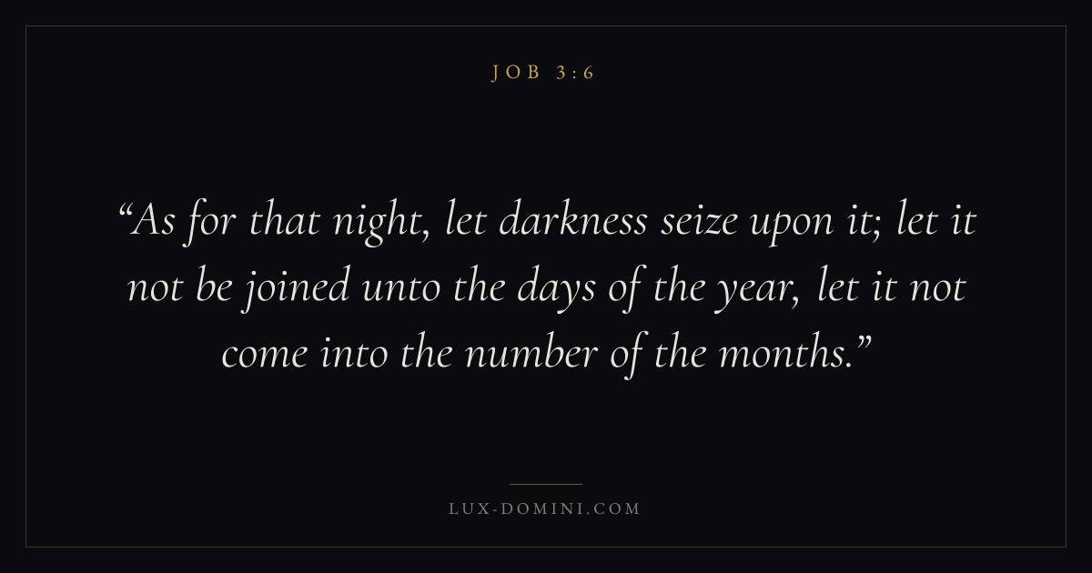 As for that night, let darkness seize upon it; let it not be joined unto the days of the year, let it not come into the number of the months.