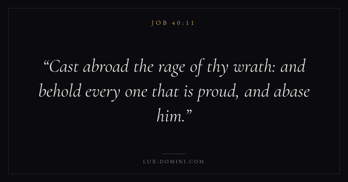 Cast abroad the rage of thy wrath: and behold every one that is proud, and abase him.
