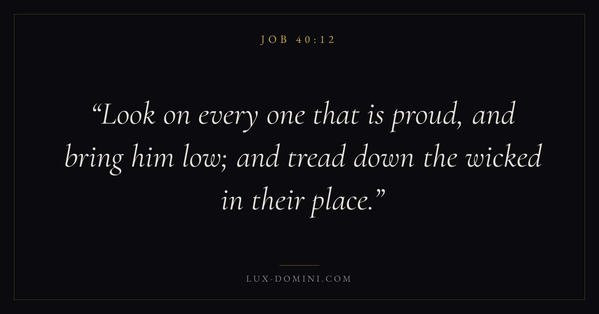 Look on every one that is proud, and bring him low; and tread down the wicked in their place.