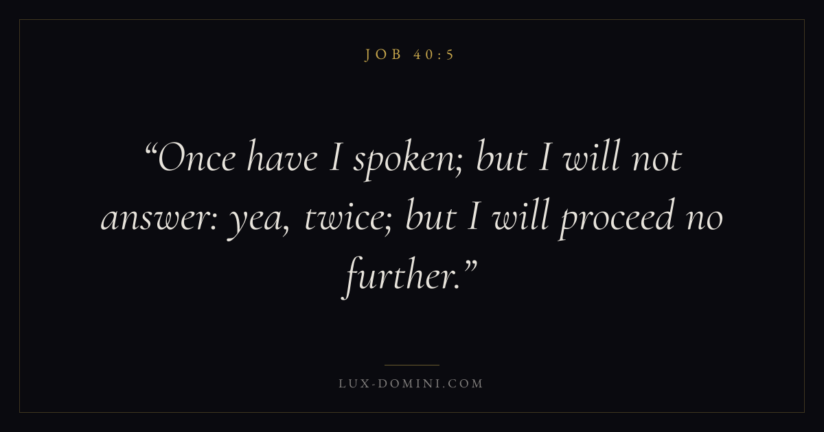 Once have I spoken; but I will not answer: yea, twice; but I will proceed no further.