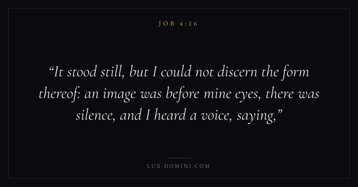 It stood still, but I could not discern the form thereof: an image was before mine eyes, there was silence, and I heard a voice, saying,