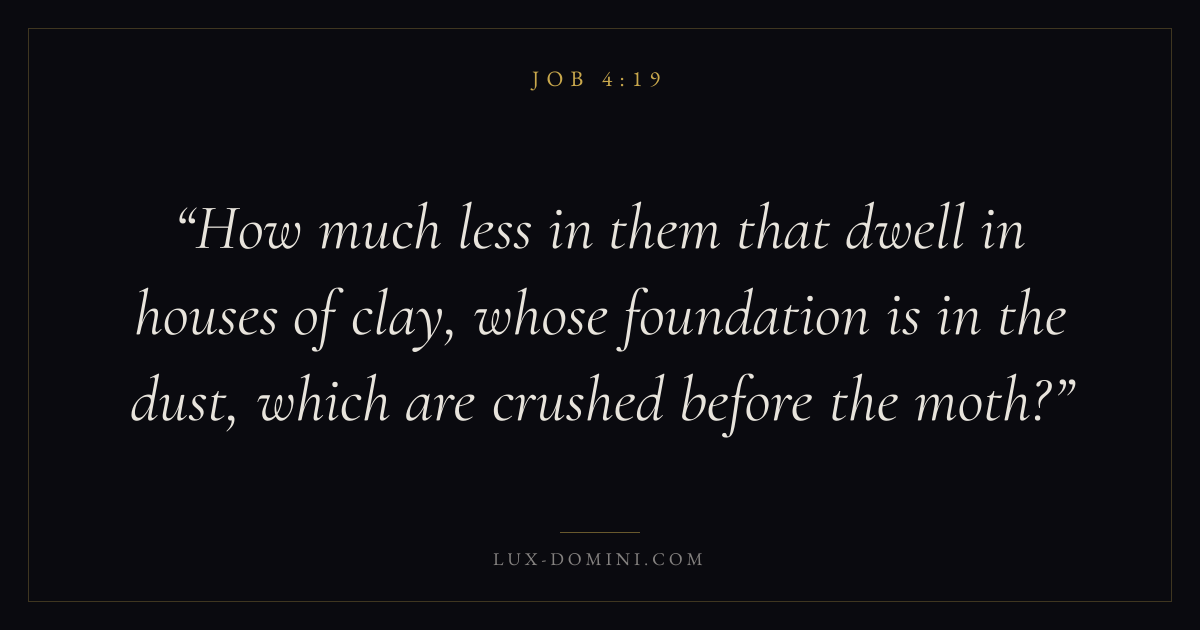 How much less in them that dwell in houses of clay, whose foundation is in the dust, which are crushed before the moth?