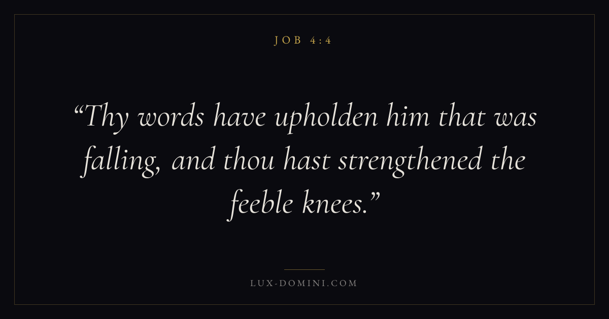 Thy words have upholden him that was falling, and thou hast strengthened the feeble knees.