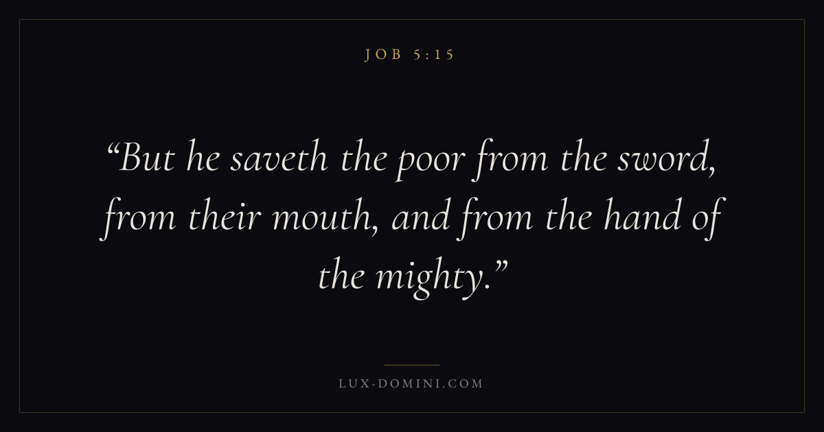 But he saveth the poor from the sword, from their mouth, and from the hand of the mighty.