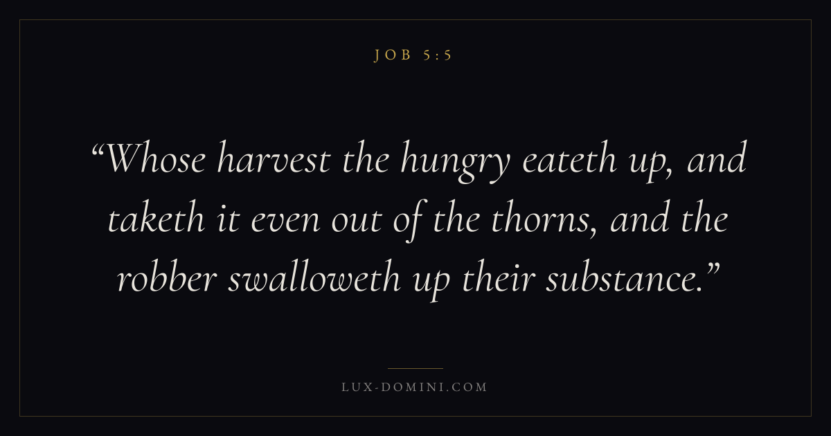 Whose harvest the hungry eateth up, and taketh it even out of the thorns, and the robber swalloweth up their substance.