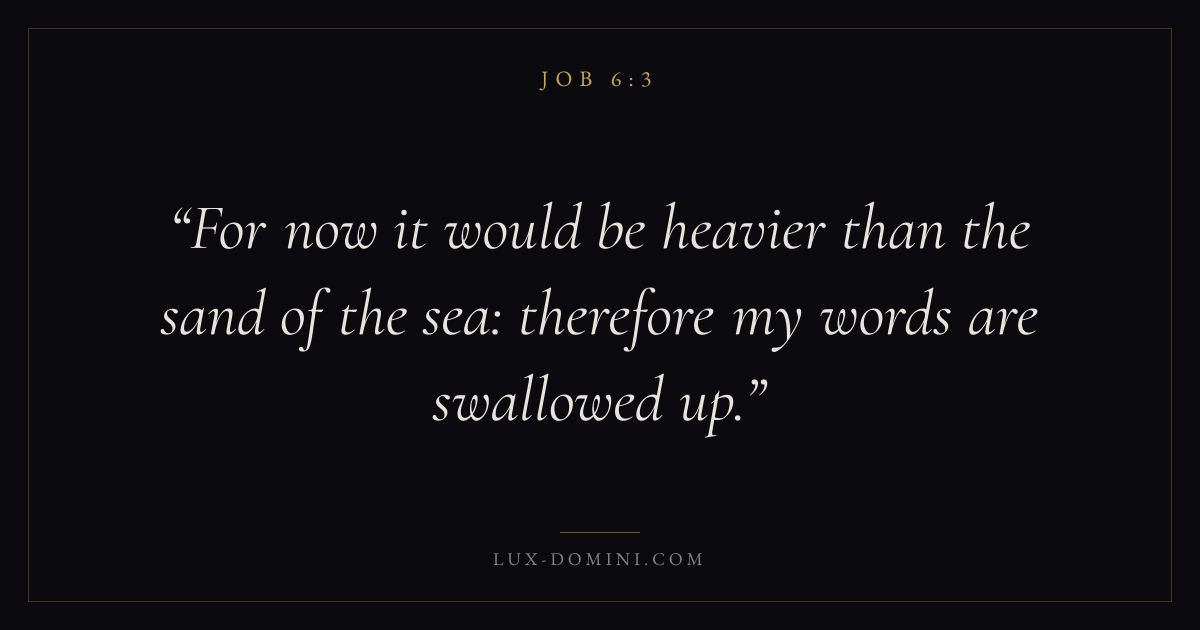 For now it would be heavier than the sand of the sea: therefore my words are swallowed up.