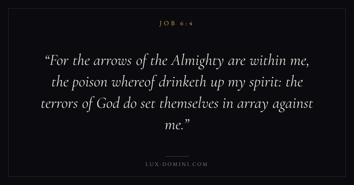 For the arrows of the Almighty are within me, the poison whereof drinketh up my spirit: the terrors of God do set themselves in array against me.