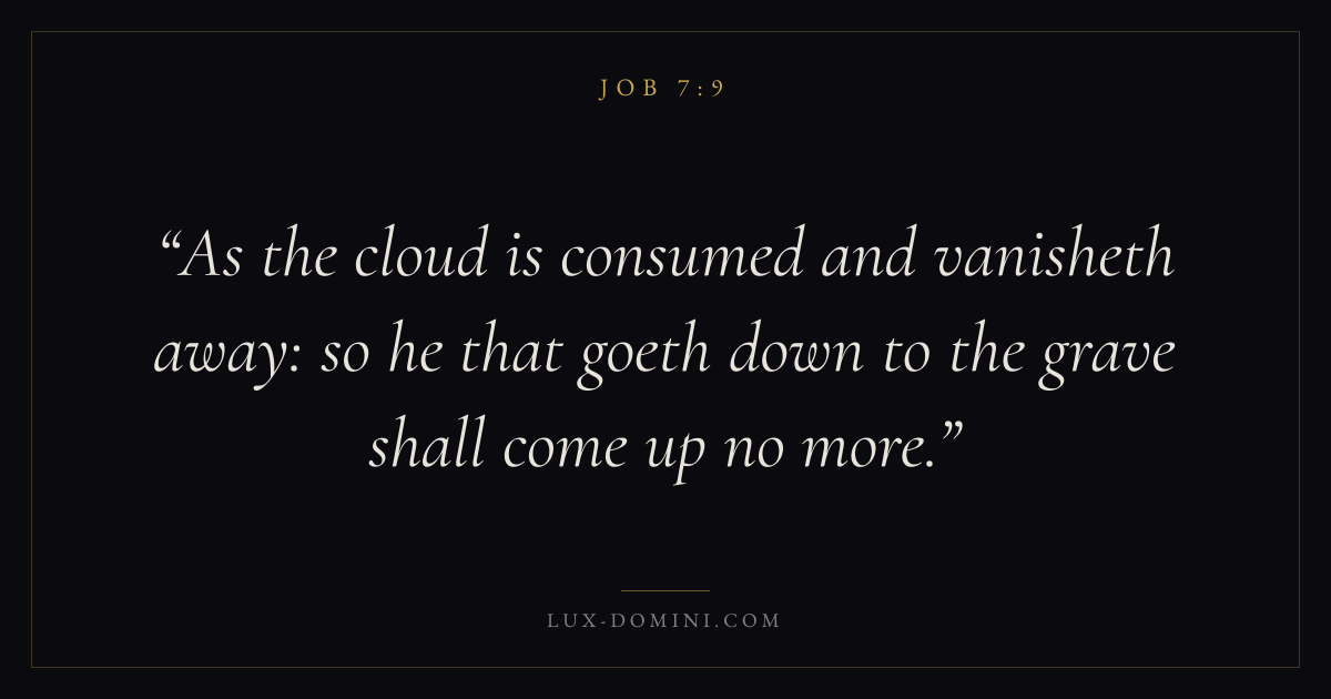 As the cloud is consumed and vanisheth away: so he that goeth down to the grave shall come up no more.