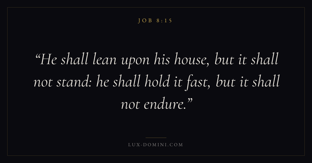 He shall lean upon his house, but it shall not stand: he shall hold it fast, but it shall not endure.