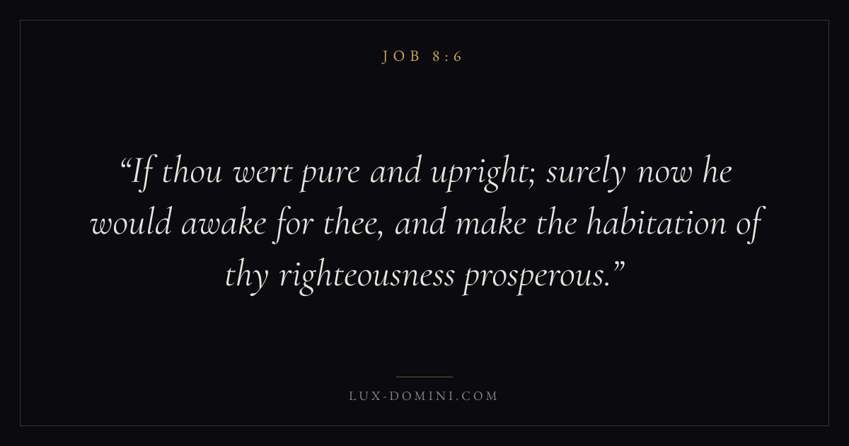 If thou wert pure and upright; surely now he would awake for thee, and make the habitation of thy righteousness prosperous.