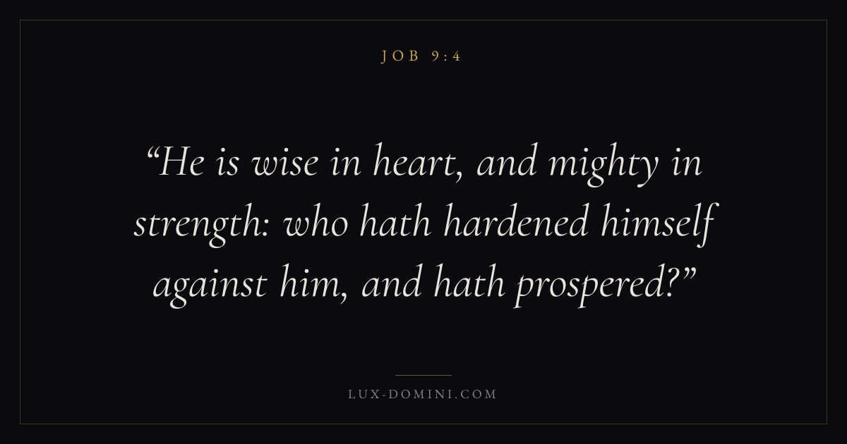 He is wise in heart, and mighty in strength: who hath hardened himself against him, and hath prospered?