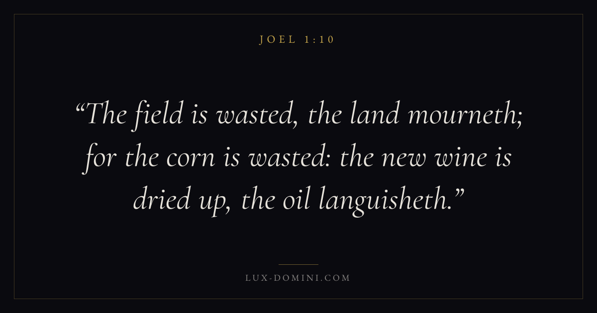 The field is wasted, the land mourneth; for the corn is wasted: the new wine is dried up, the oil languisheth.