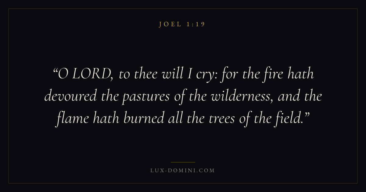 O LORD, to thee will I cry: for the fire hath devoured the pastures of the wilderness, and the flame hath burned all the trees of the field.