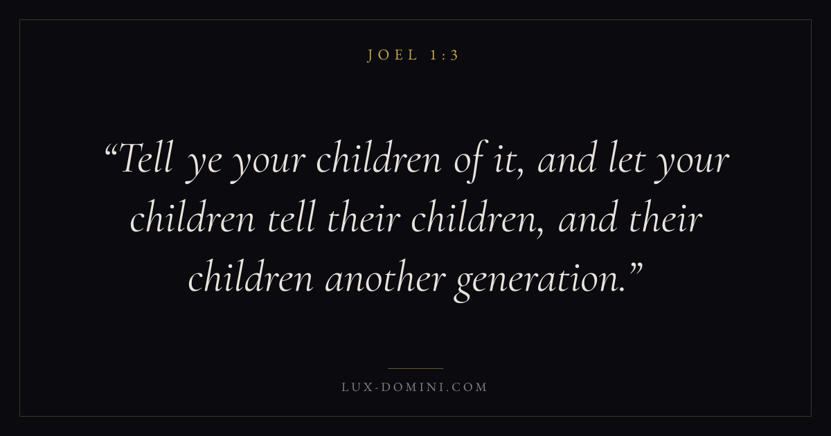 Tell ye your children of it, and let your children tell their children, and their children another generation.