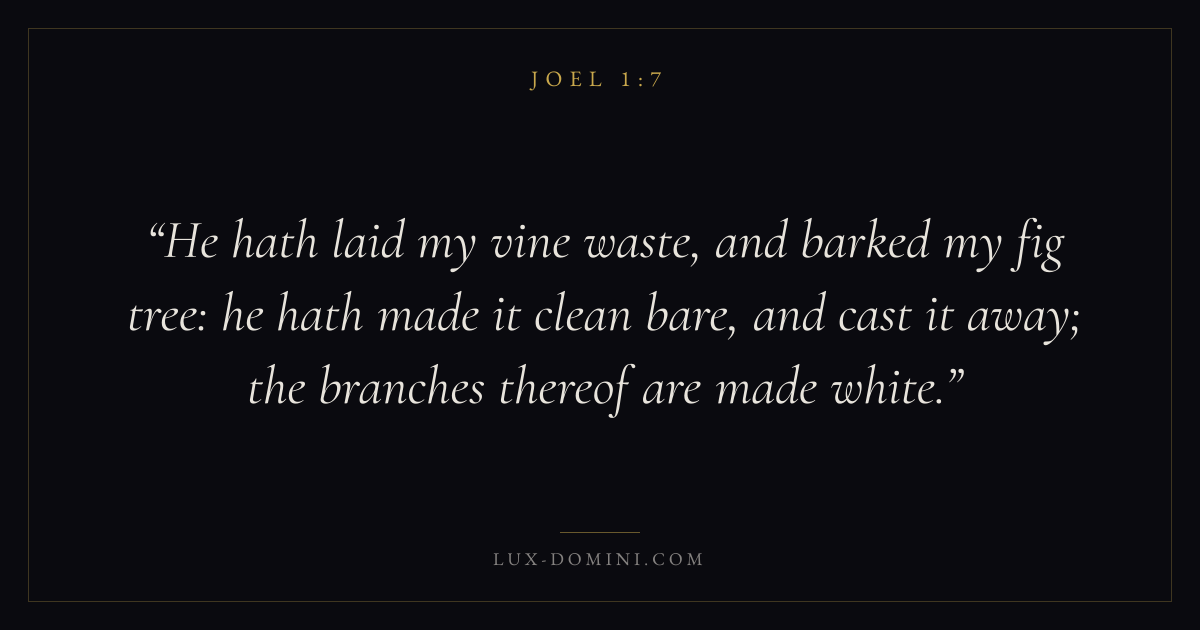 He hath laid my vine waste, and barked my fig tree: he hath made it clean bare, and cast it away; the branches thereof are made white.