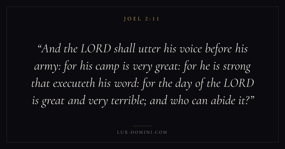 And the LORD shall utter his voice before his army: for his camp is very great: for he is strong that executeth his word: for the day of the LORD is great and very terrible; and who can abide it?
