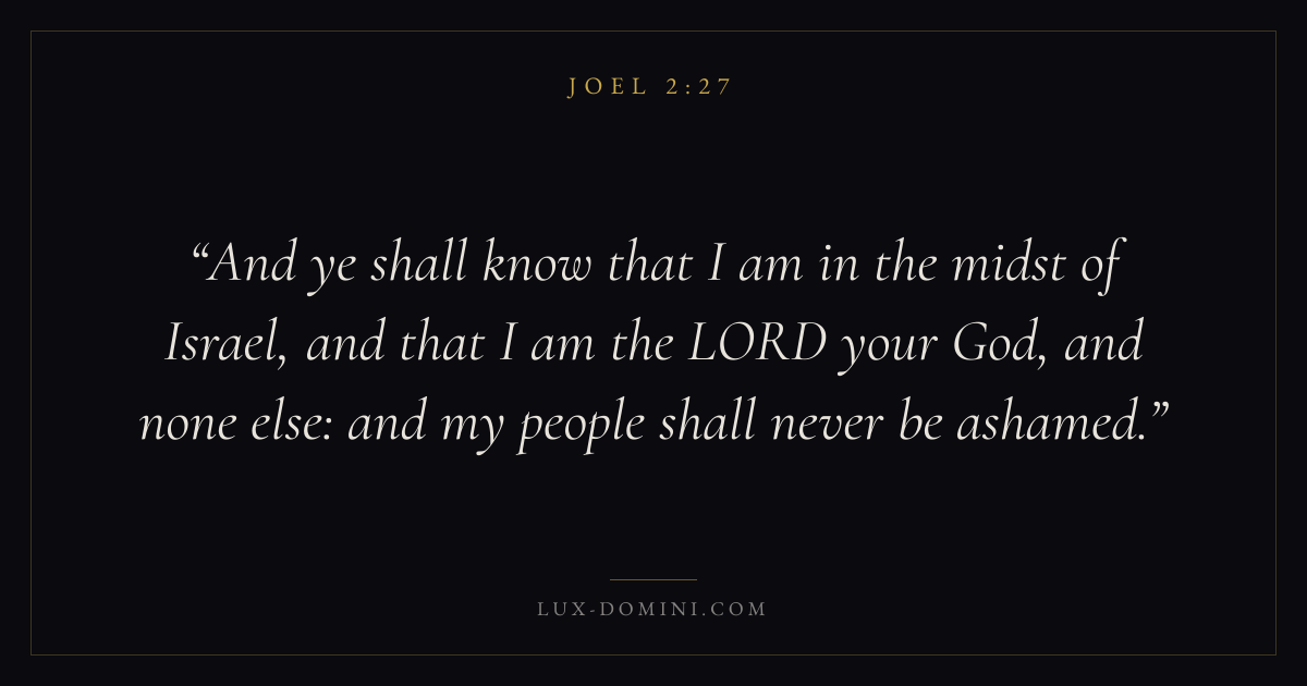 And ye shall know that I am in the midst of Israel, and that I am the LORD your God, and none else: and my people shall never be ashamed.