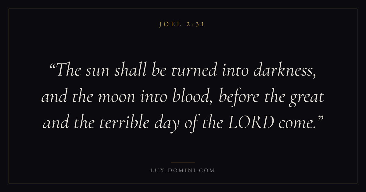 The sun shall be turned into darkness, and the moon into blood, before the great and the terrible day of the LORD come.