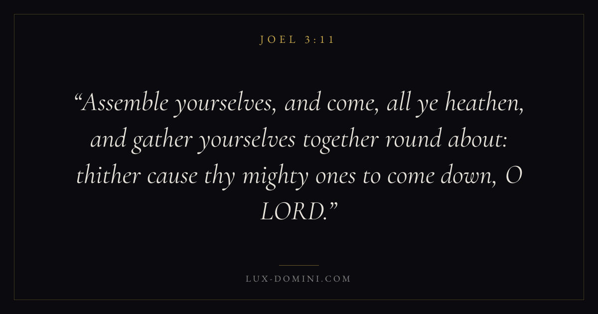 Assemble yourselves, and come, all ye heathen, and gather yourselves together round about: thither cause thy mighty ones to come down, O LORD.