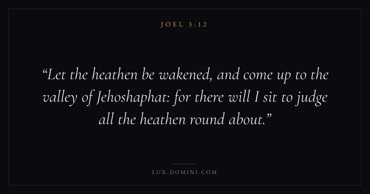 Let the heathen be wakened, and come up to the valley of Jehoshaphat: for there will I sit to judge all the heathen round about.