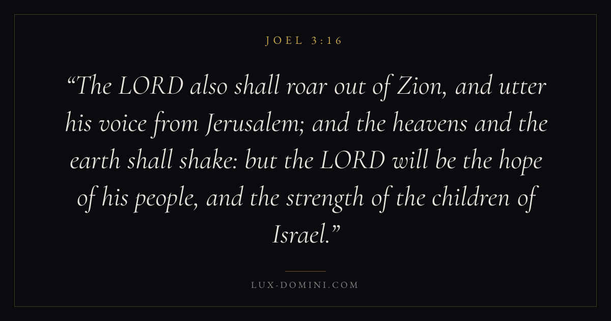 The LORD also shall roar out of Zion, and utter his voice from Jerusalem; and the heavens and the earth shall shake: but the LORD will be the hope of his people, and the strength of the children of Israel.