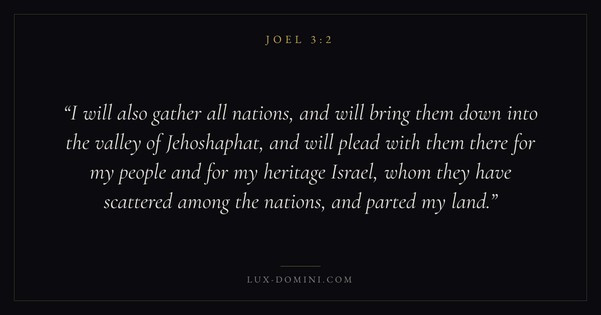 I will also gather all nations, and will bring them down into the valley of Jehoshaphat, and will plead with them there for my people and for my heritage Israel, whom they have scattered among the nations, and parted my land.
